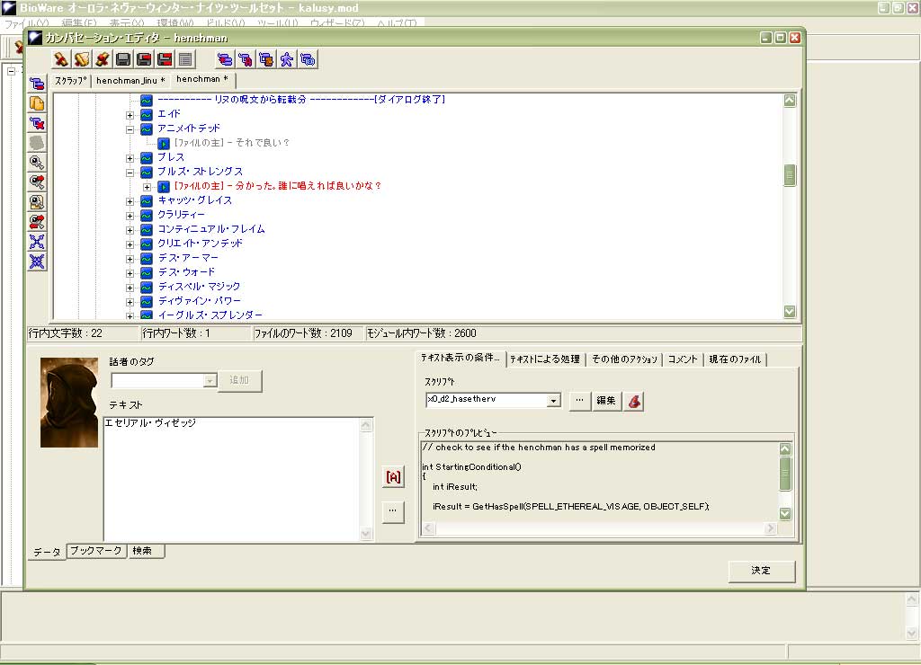ヘンチマンの会話ファイルに呪文を補充中
