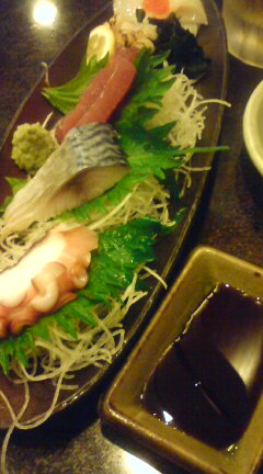 ともかく、一番最初に出てきたメニューは、刺身五点盛り合せ。
