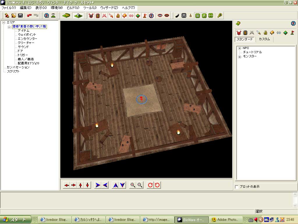 「配置用オブジェクト」も設置して、ここまでで随分、雰囲気が整ってきました。後はやっぱり酒場ですから、お客がいないと寂しいです。